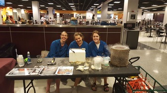 Zoe, Olivia, and Sydney manning the SMACS table